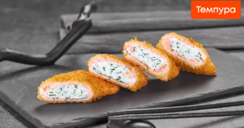 Состав: Лосось, сливочный крем мус, кляр (мука,вода), сухари панко.