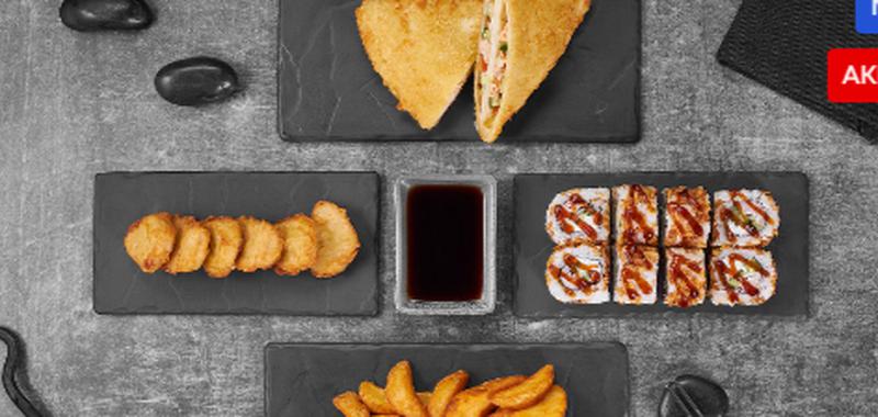 Состав: Картофель Айдахо 110гр, Кесадилья с курицей, Наггетсы куриные 100гр, Дон бекон (8 шт.)
