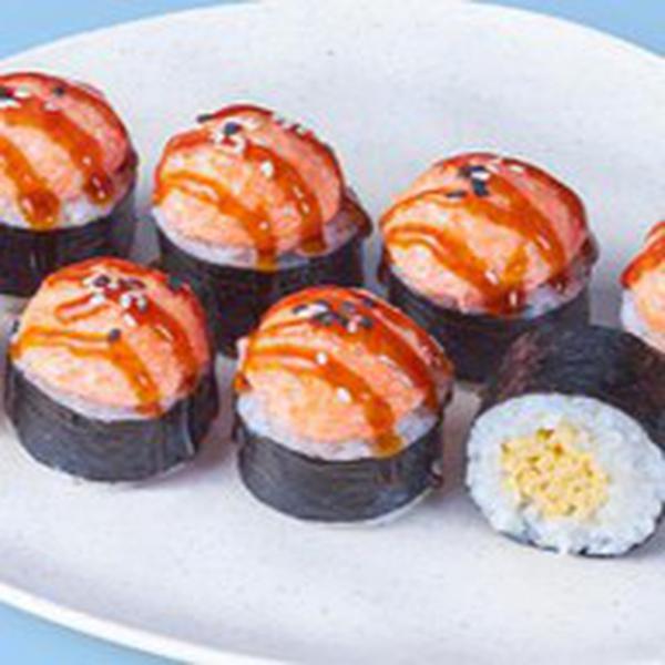 Состав: Блин тамаго, фирменный сырный соус (майонез, сыр пармезан, оранжевая икра масаго), унаги соус, кунжут, рис (рис, вода, заправка для риса), нори *Не забудьте заказать имбирь, васаби и соевый соус. Они не входят в стоимость заказа.