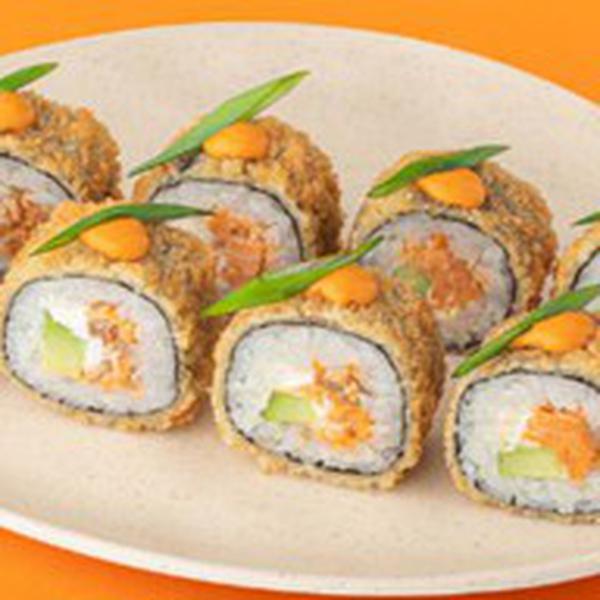 Состав: Сливочный сыр, лосось терияки (лосось, пшеничная мука, подсолнечное масло, терияки соус), авокадо, темпурный кляр (темпурная мука, вода), панировочные сухари, спайси соус, зеленый лук, рис (рис, вода, заправка для риса), нори *Не забудьте заказать имбирь, васаби и соевый соус. Они не входят в стоимость заказа.