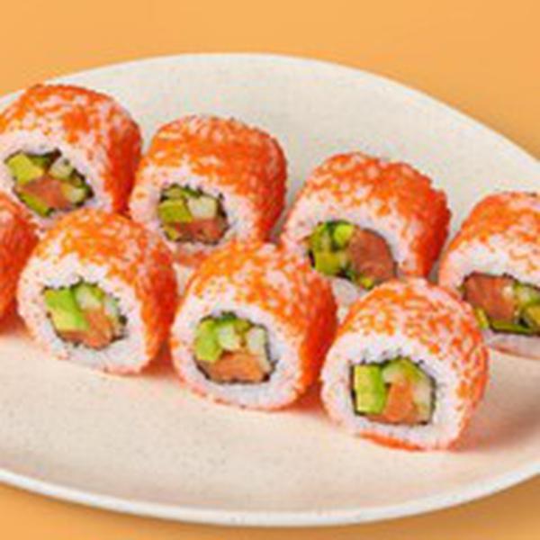 Состав: Лосось, икра масаго, авокадо, огурец, майонез, рис (рис, вода, заправка для риса), нори *Не забудьте заказать имбирь, васаби и соевый соус. Они не входят в стоимость заказа