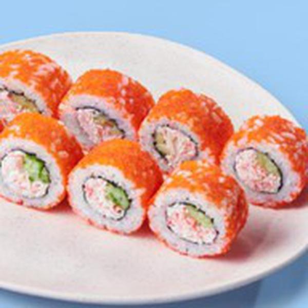 Состав: Крабовые палочки, икра масаго, майонез, огурец, рис (рис, вода, заправка для риса), нори *Не забудьте заказать имбирь, васаби и соевый соус. Они не входят в стоимость заказа.