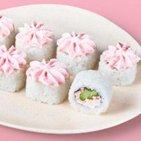 Состав: Крабовые палочки, сливочный сыр, огурец, соус лава (майонез, красная икра масаго, кунжутное масло), рис (рис, вода, заправка для риса), нори *Не забудьте заказать имбирь, васаби и соевый соус. Они не входят в стоимость заказа