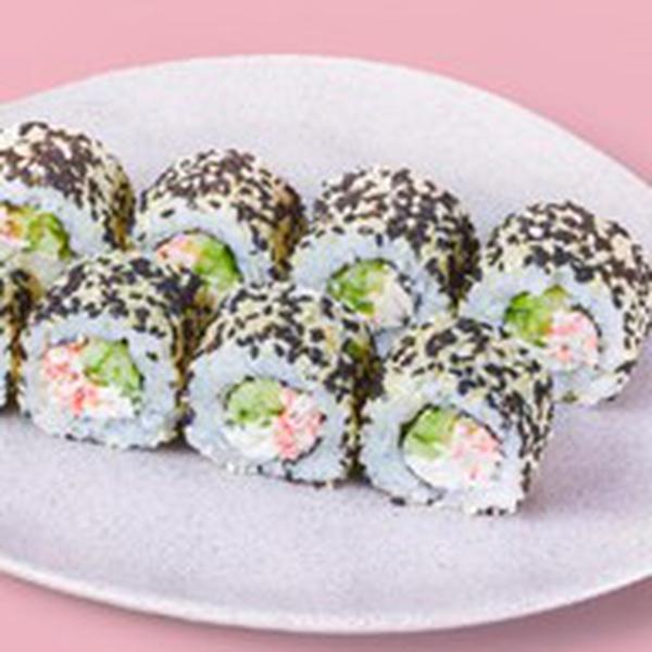 Состав: Крабовые палочки, сливочный сыр, огурец, кунжут, рис (рис, вода, заправка для риса), нори *Не забудьте заказать имбирь, васаби и соевый соус. Они не входят в стоимость заказа.