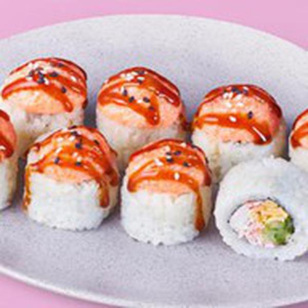 Состав: Сливочный сыр, блин тамаго, крабовые палочки, огурец, фирменный сырный соус (майонез, сыр пармезан, оранжевая икра масаго), унаги соус, кунжут, рис (рис, вода, заправка для риса), нори *Не забудьте заказать имбирь, васаби и соевый соус. Они не входят в стоимость заказа.