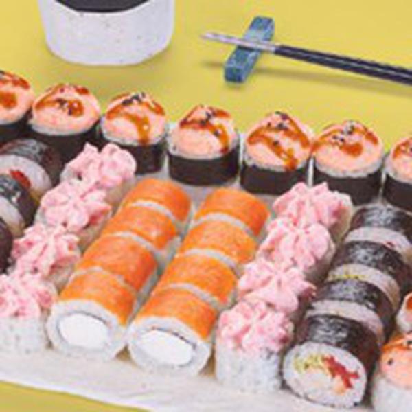 Состав: Филадельфия лайт (8 шт.), Цезарь ролл (8 шт.), Лава краб (8 шт.), Нежный с курицей (8 шт.), Грибной (8 шт.) *Не забудьте заказать имбирь, васаби и соевый соус. Они не входят в стоимость заказа.