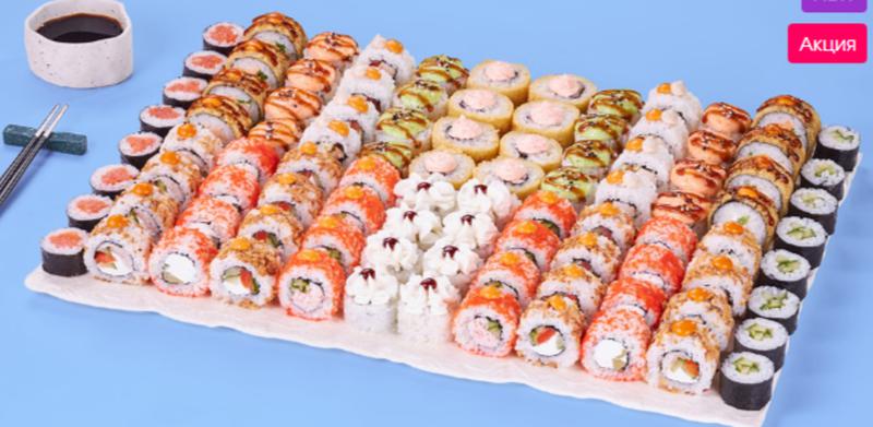 Состав: Ролл Кудзира (8 шт.), Ролл Бао (8 шт.), Ролл Белоснежка (8 шт.), Царевна ролл (8 шт.), Ролл Сакана (8 шт.), Ролл Макото (8 шт.), Каппа маки ролл (мини) (8 шт.), Сяке маки ролл (мини) (8 шт.), Ролл Сакума (8 шт.), Ролл Аква (8 шт.), Ролл Сальвадор (8 шт.), Ролл Беби (8 шт.). *Не забудьте заказать имбирь, васаби и соевый соус. Они не входят в стоимость заказа. *Внешний вид блюда может отличаться от фото на сайте.