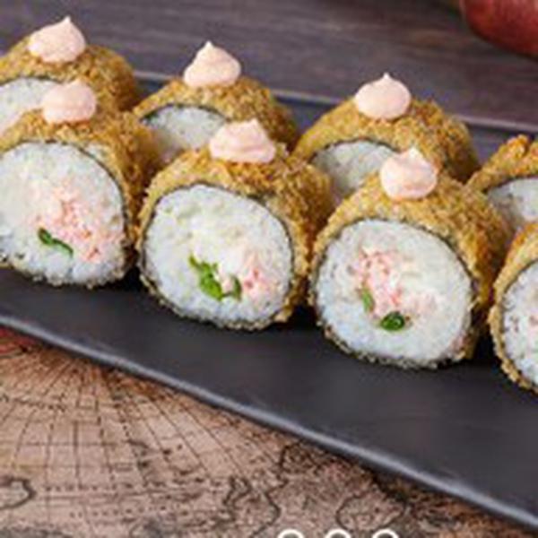 Состав: Краб-замес, сыр сливочный, лук зеленый, соус яки, кляр, сухари панко, рис, нори. Не забудьте заказать имбирь, васаби и соевый соус. Они не входят в стоимость заказа.