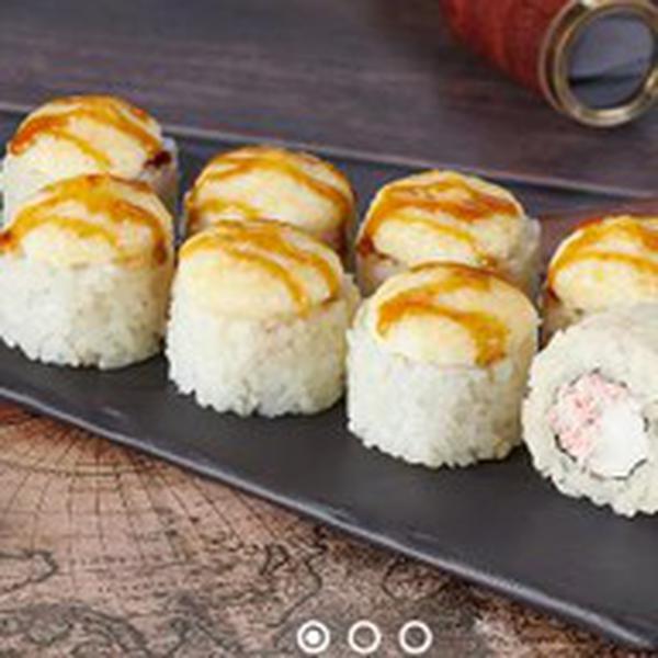 Состав: Краб-замес, сыр сливочный, замес монако, соус унаги, рис, нори. Не забудьте заказать имбирь, васаби и соевый соус. Они не входят в стоимость заказа.