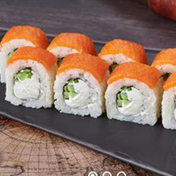 Состав: Лосось, сыр сливочный, огурец, рис, нори. Не забудьте заказать имбирь, васаби и соевый соус. Они не входят в стоимость заказа.