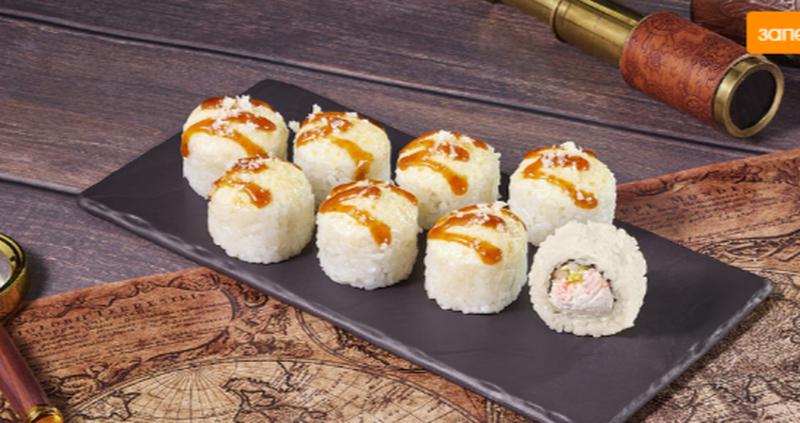 Состав: Сыр сливочный, краб-замес, сыр пармезан, пекинская капуста, монако с беконом, унаги соус, нори, рис. *Не забудьте заказать имбирь, васаби и соевый соус. Они не входят в стоимость заказа.