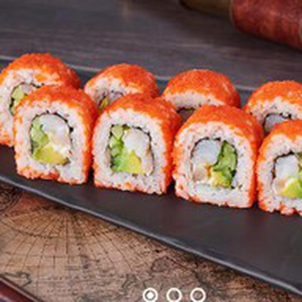 Состав: Креветка, огурец, авокадо, японский майонез, икра масаго, рис, нори. Не забудьте заказать имбирь, васаби и соевый соус. Они не входят в стоимость заказа.