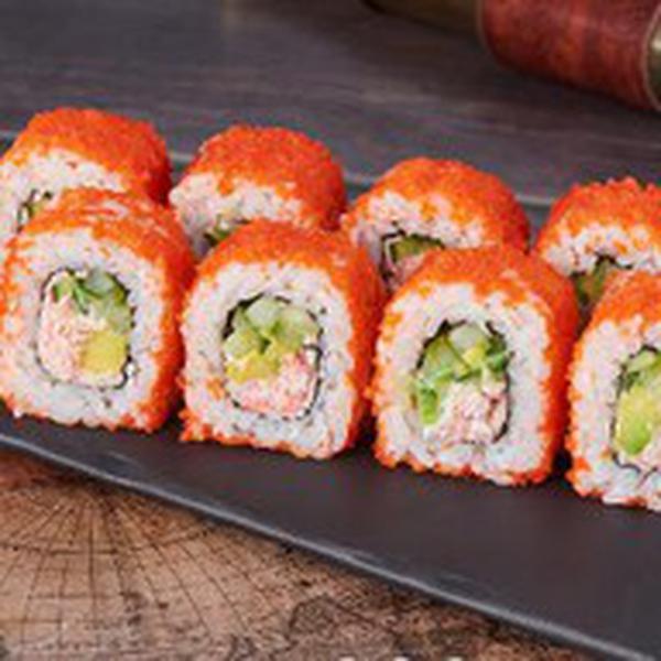 Состав: Краб-замес, огурец, авокадо, японский майонез, икра масаго, рис, нори. Не забудьте заказать имбирь, васаби и соевый соус. Они не входят в стоимость заказа.