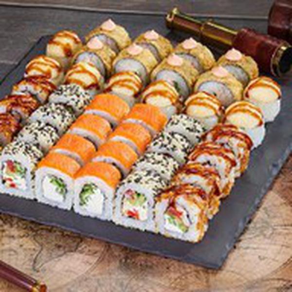 Состав: Ролл Филадельфия Лайт (8 шт.), ролл Монтана (8 шт.), ролл Египетская курица (8 шт.), ролл Калифорнийский фреш (8 шт.), ролл Карибы (8 шт.) *Не забудьте заказать имбирь, васаби и соевый соус. Они не входят в стоимость заказа.