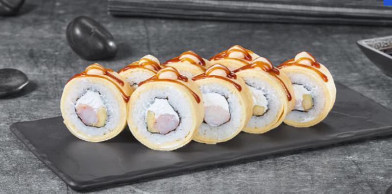 Состав: Креветки, авокадо, сыр сливочный, блин томаго, соус японский майонез, соус унаги, рис, нори. *Внешний вид блюда может отличаться от фото на сайте